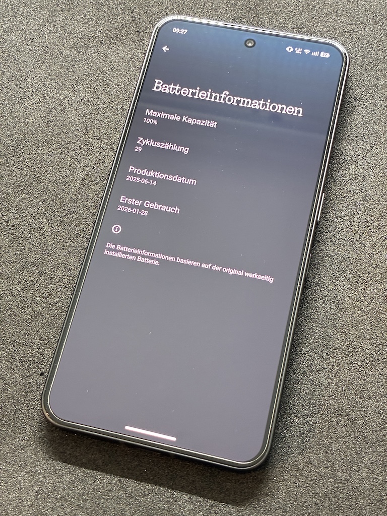Akku in Top-Zustand (100% / nur 29 Ladezyklen)